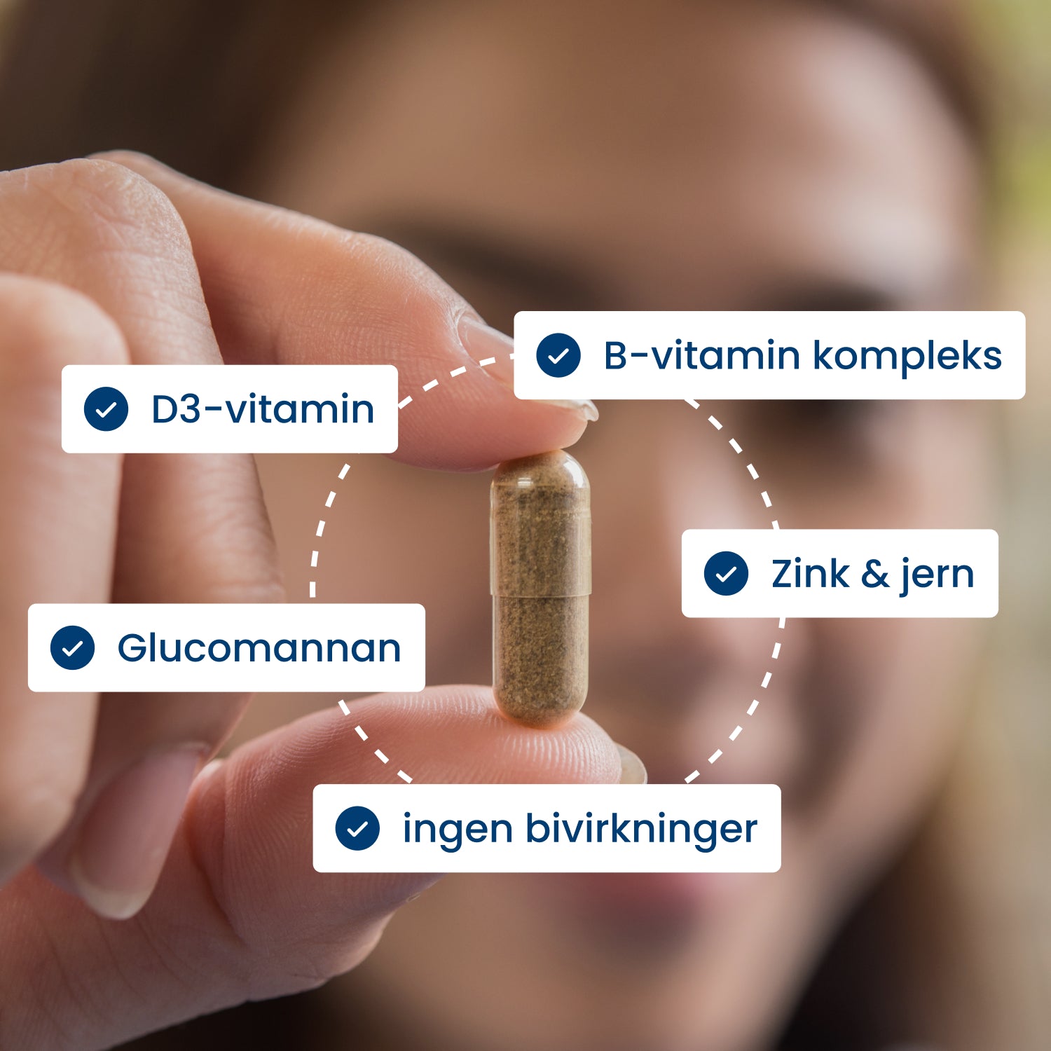 "Jeg har taget kapslerne i et stykke tid og er rigtig tilfreds. Selv min træthed er blevet mindre."